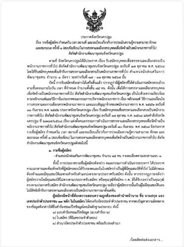 ประกาศรายชื่อผู้สมัคร กำหนดวัน เวลา สถานที่ และระเบียบเกี่ยวกับการประเมินความรู้ความสามารถ ทักษะ และสมรรถนะ ครั้งที่ 1 (สอบข้อเขียน) ในการสรรหาและเลือกสรรบุคคลเพื่อจัดจ้างเป็นพนักงานราชการทั่วไป สังกัดสำนักงานพัฒนาชุมชนจังหวัดนครปฐมจังหวัดนครปฐม